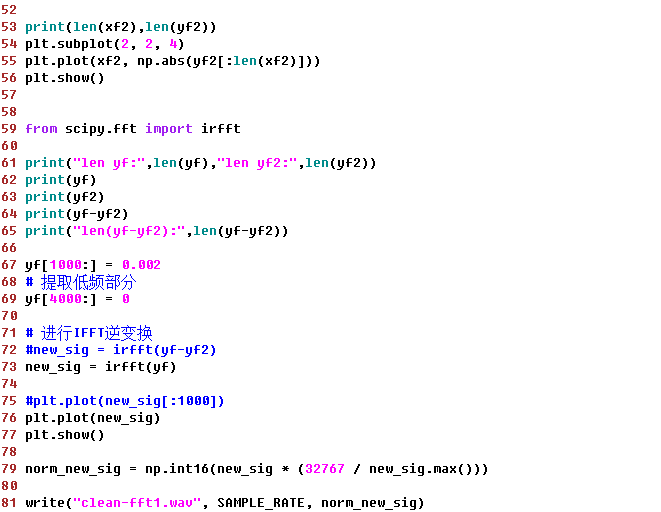 傅立叶变换是可逆的,在频域中对信号所做的任何更改都将在将其变换回时域时应用。可利用这一点来过滤音频并去除高频,进而实现降噪,当然该方法仅适用于高频噪音。