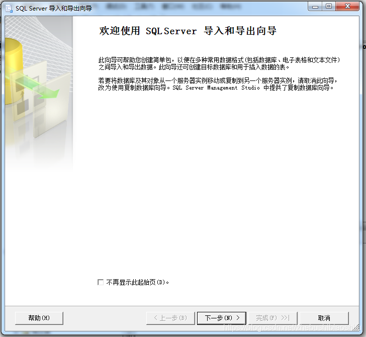 (2) 在“对象资源管理器”窗格中,选择“数据库”→“jxsk”并右击,在弹出的菜单中选择“任务”→“导入数据”,打开“SQL Serve 导入和导出向导”,如下图;