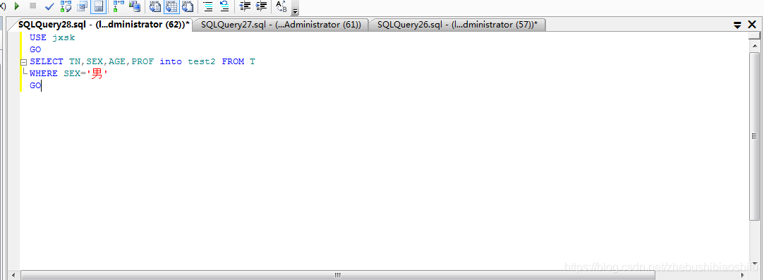 - 21 T-SQL复制数据库表T中“男”同学记录,生成新数据库表test2