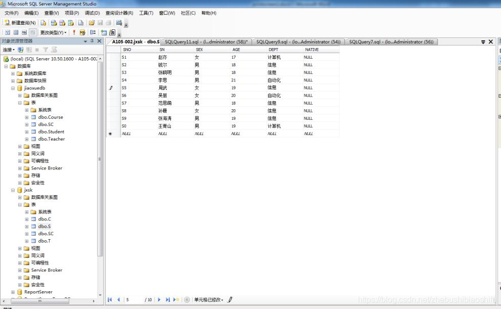 - 9 T-SQL向数据库表S中添加列NATIVE