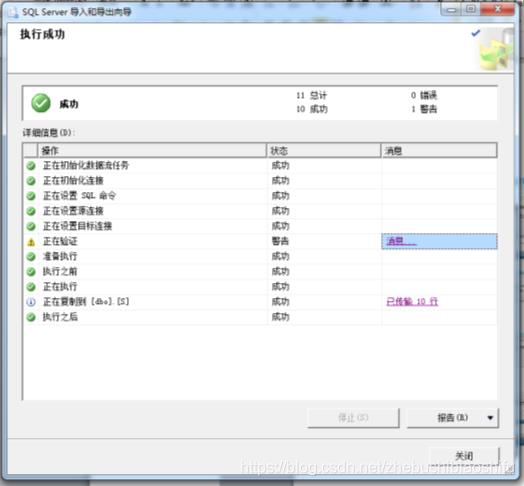 (6) 执行完毕,系统显示“执行成功”窗口,如果有“错误”,返回前面相应的步骤纠正后,继续执行。单击“关闭”按钮,数据导入操作完成,如下两图;