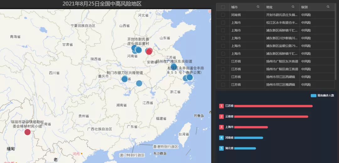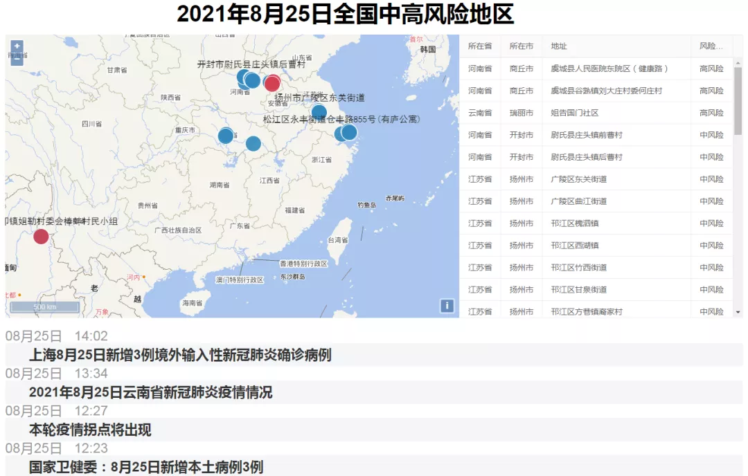 图:2021.08.25全国中高风险地区信息展示平台