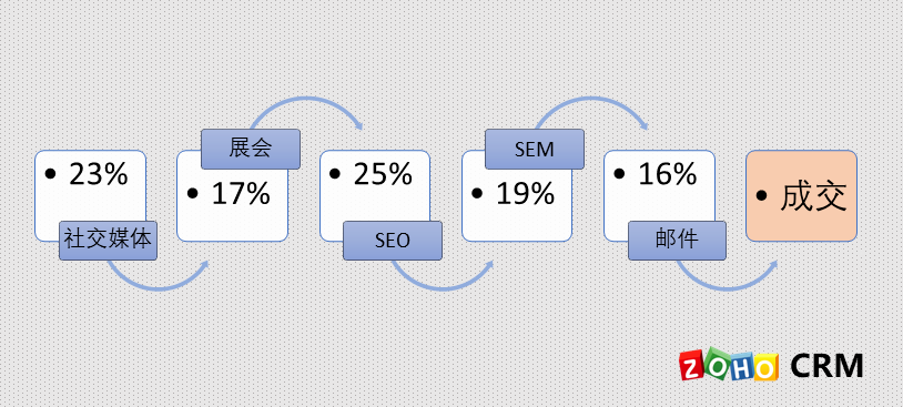 在市场营销预算缩减的环境下,需要企业在每个渠道展示可量化的结果。CRM客户管理系统的营销归因功能,让市场部的每一个决策都充满智慧。那么CRM系统中的营销归因模型有哪些?下面我们以Zoho CRM为例: