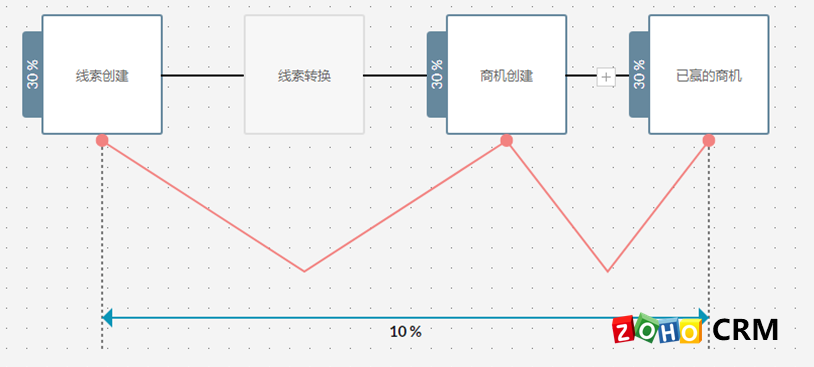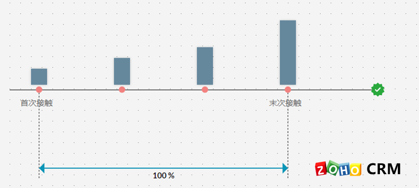 线性归因模型看起来已经很全面了,因为它对每个接触点都给予了同样的重视,但现实情况里并非如此,因为不可能每次接触都真正为销售贡献相同的金额。为了解决这个问题,Zoho营销CRM中的线性归因模型中,还提供了4级权重,来区分每个接触点的重要程度。