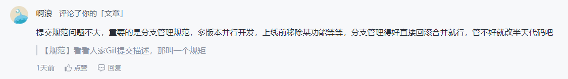 最近翻看博客中小伙伴评论时,发现文章【规范】看看人家Git提交描述,那叫一个规矩一条回复: