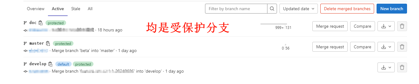 主干分支具有分支保护权限,只有运维有权限进行合并分支