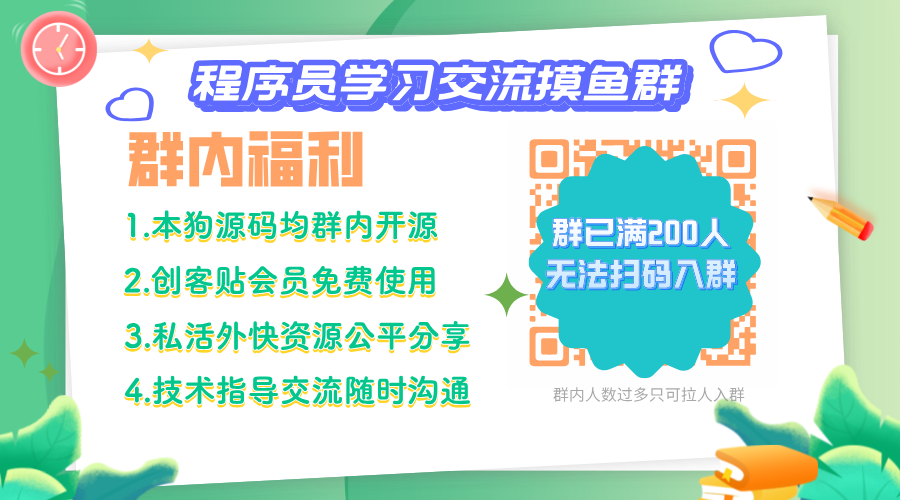 公众号回复【入群】或者【加入】,便可成为【程序员学习交流摸鱼群】的一员,问题随便问,牛逼随便吹,目前群内已有超过280+个小伙伴啦!!!