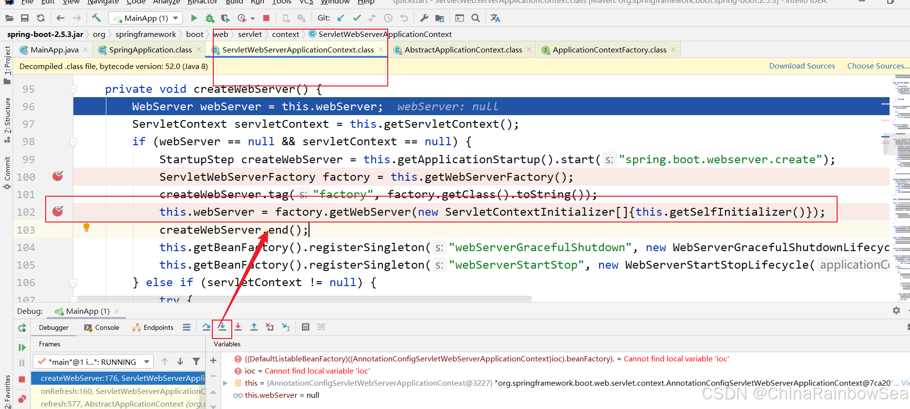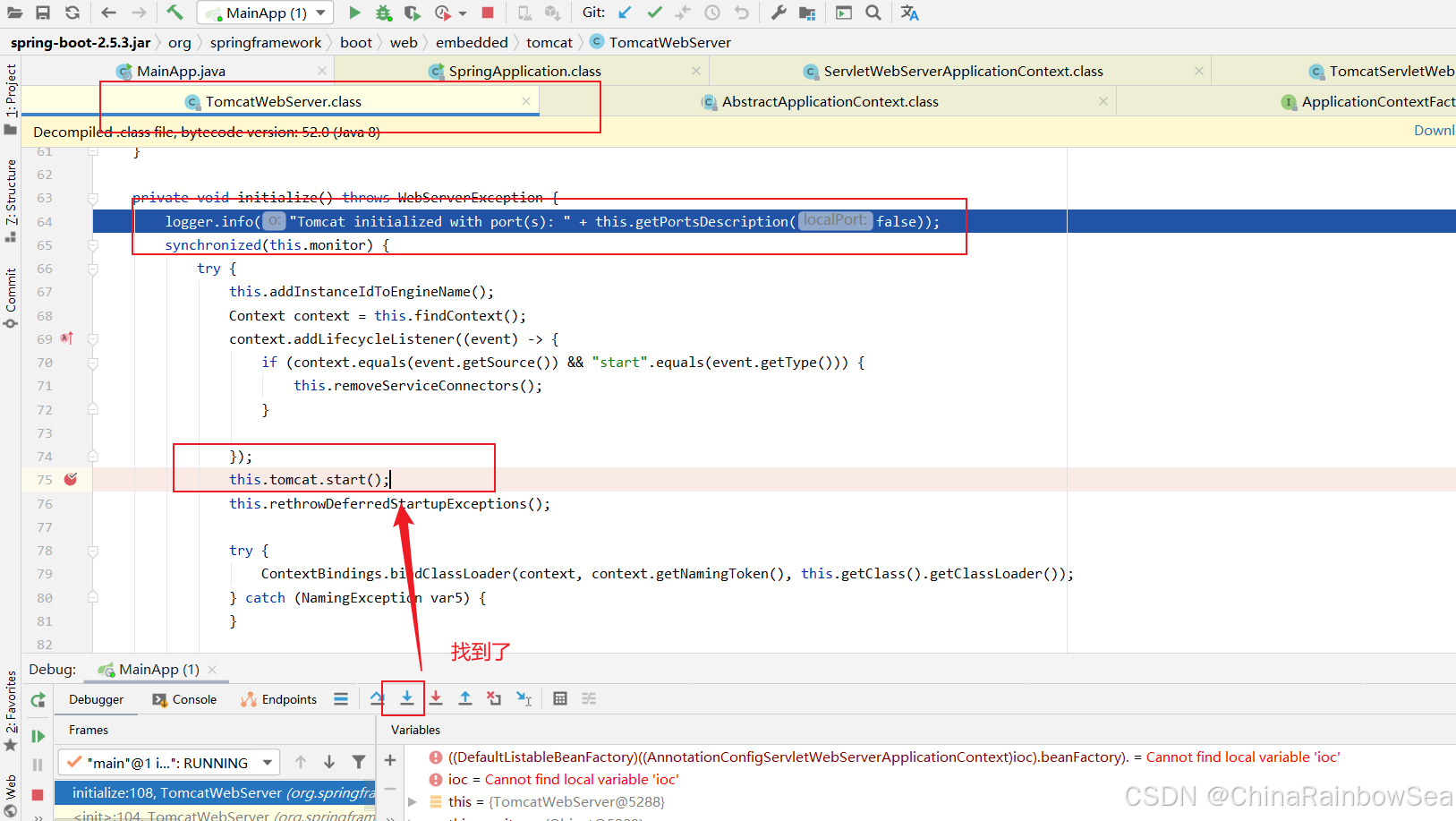 DeBug SpringApplication.run(MainApp.class, args); 看看 Spring Boot 是如何启动 Tomcat的