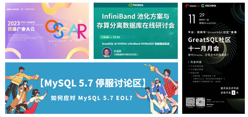 2023 年是收获的一年。GreatSQL 开源数据库项目成功捐赠开放原子开源基金会,成为基金会旗下孵化项目。同时,GreatSQL社区还通过了中国信通院可信开源社区评审,取得了社区运营能力先进级、社区治理和社区开发能力增强级的社区成熟度评估,加入信通院数据库应用创新实验室,成为实验室成员之一。