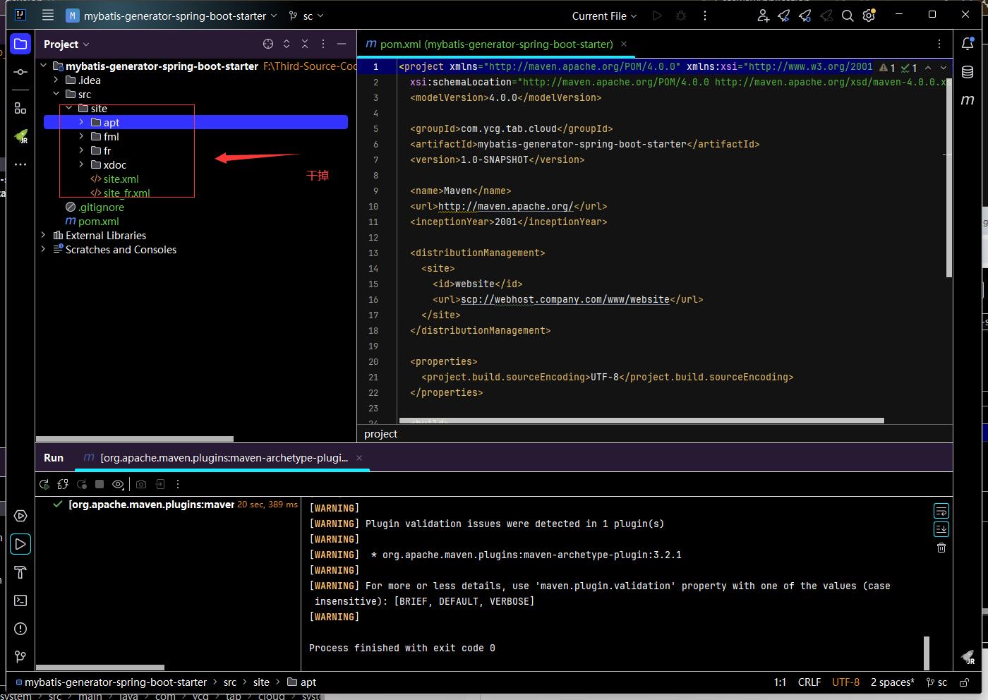 这里我们把多余的目录、文件删除,这里使用了Maven的初始化模板,会自动生成一些模板文件;但是,该操作的主要目的只是获得一个Maven结构的项目