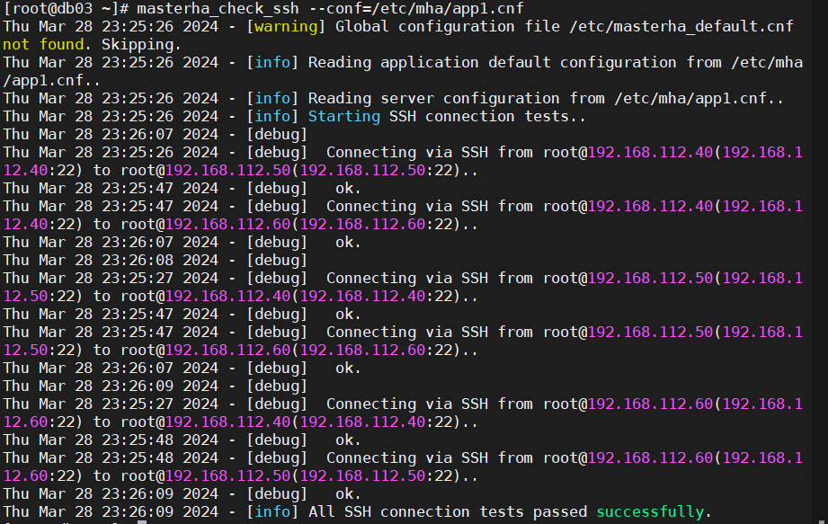 masterha_check_ssh --conf=/etc/mha/app1.cnf