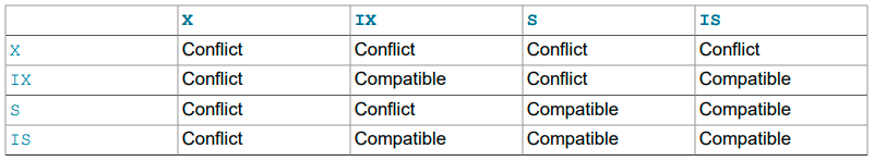 Table-level lock type compatibility is summarized in the following matrix【ˈmeɪtrɪks 矩阵;基体;杂基;(人或社会成长发展的)社会环境,政治局势;线路网;矩阵转接电路;道路网;】.