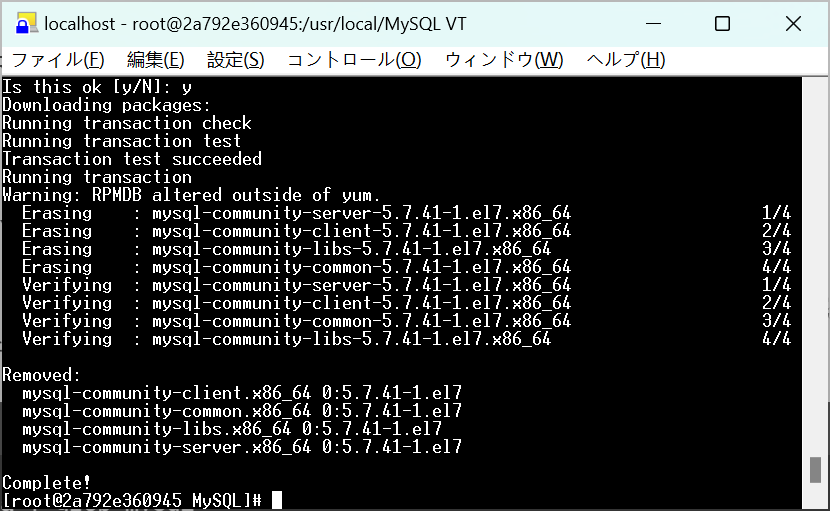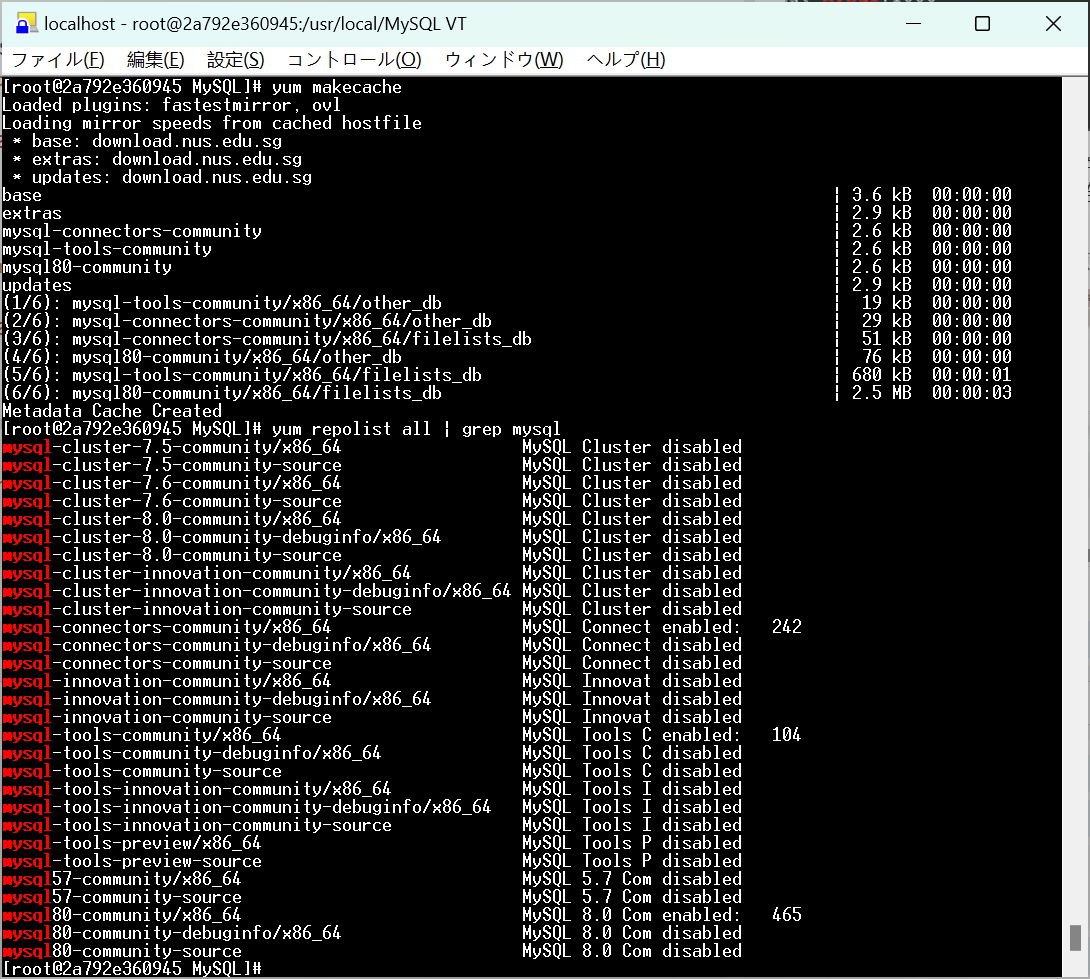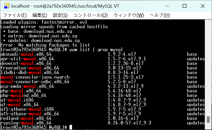 [root@2a792e360945 MySQL]# yum list installed | grep mysql