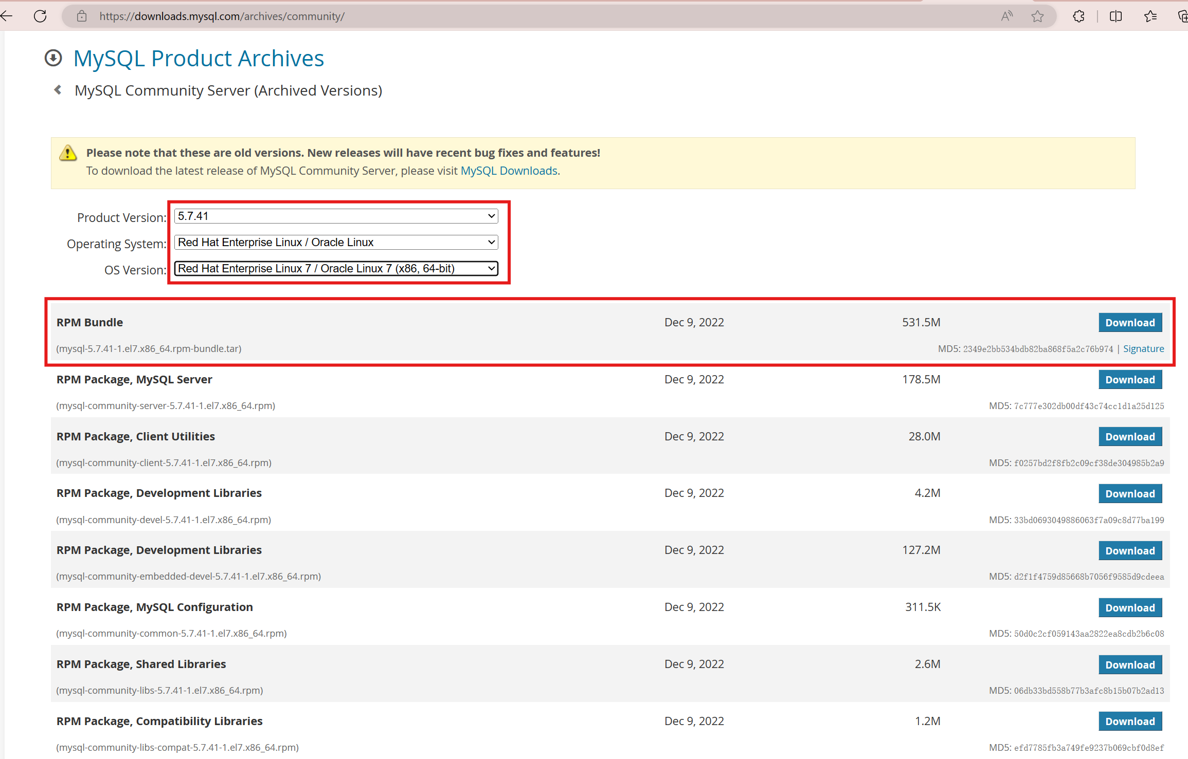 [root@2a792e360945 ~]# tar -xvf /root/temp/mysql-5.7.41-1.el7.x86_64.rpm-bundle.