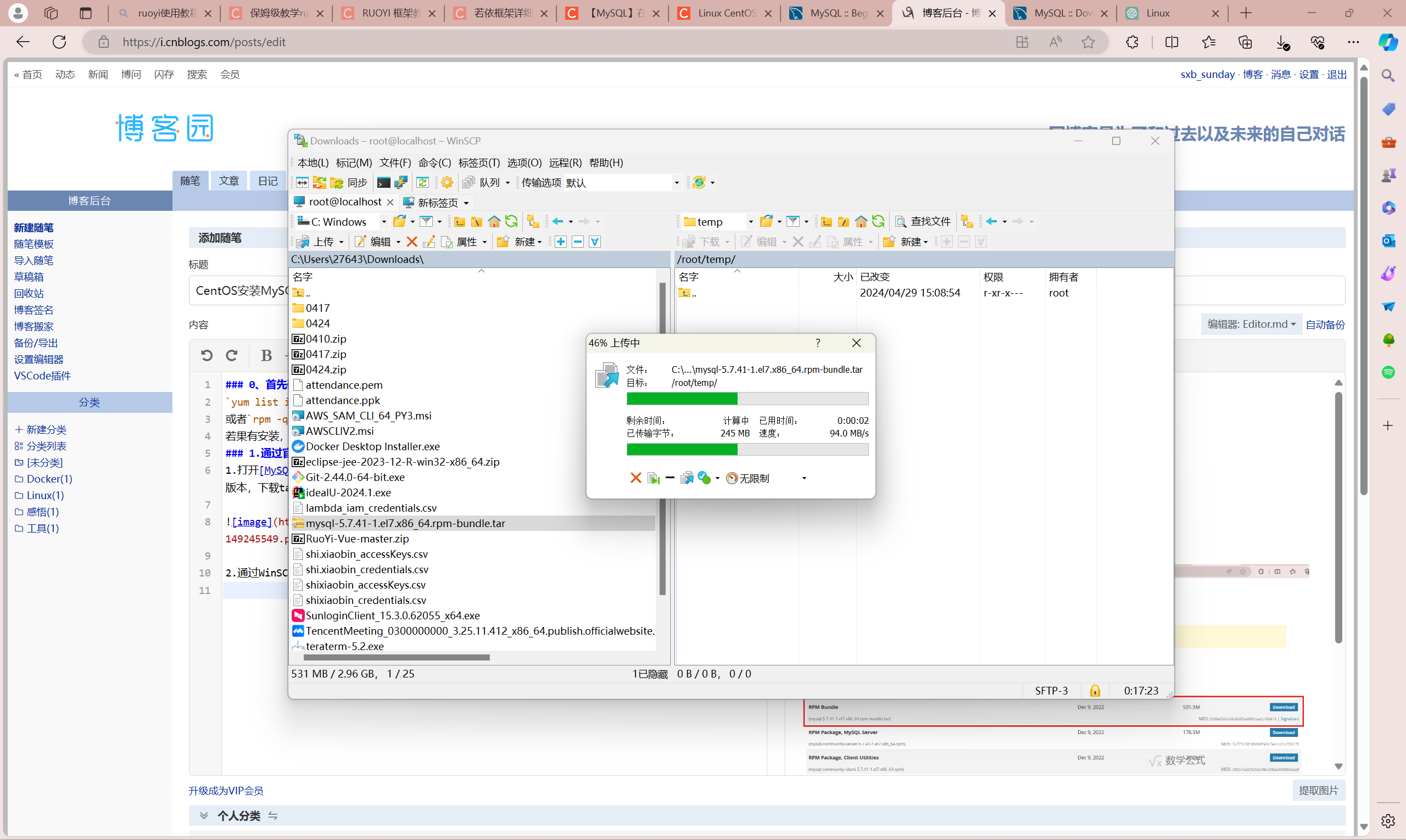 解压上传好的MySQL压缩包,解压后得到若干RPM安装包