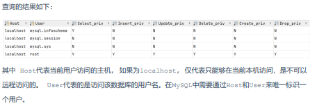 - 在MySQL中需要通过用户名@主机名的方式,来唯一标识一个用户。