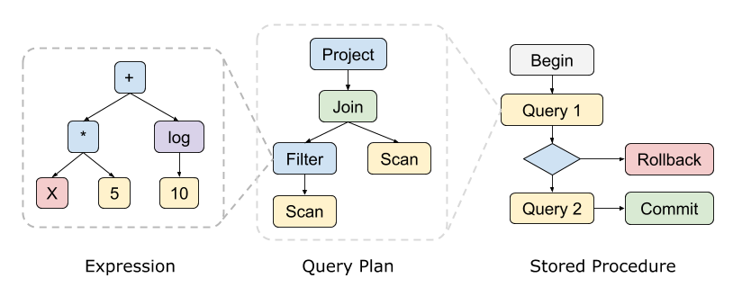另外,LLVM技术可以有不同的实现粒度。比如:可使用LLVM加速表达式计算,或再进一步,将多个算子融合编译成定制的机器码,或将自定义函数、存储过程等编译成定制的机器码。