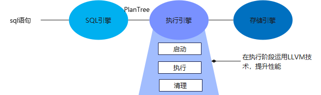 数据库在执行引擎中,运用LLVM技术提升SQL的执行速度。如下图所示: