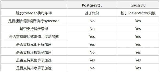 3) GaussDB在执行引擎侧根据情况使用CodeGen技术进行性能优化。