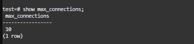 select name,setting,pending_restart from sys_settings where name = ‘max_connections’;