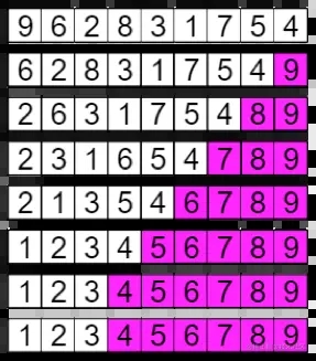 - 在第一轮比较结束后,最大的元素被移动到了最后一个位置。
