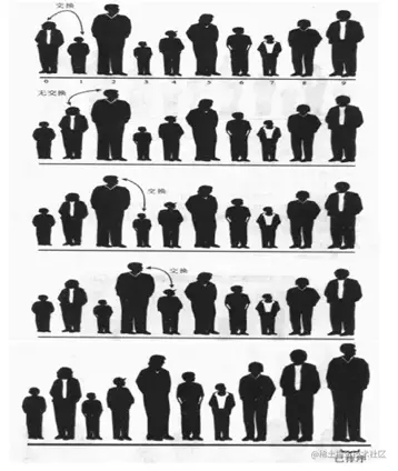 - 从第一个元素开始,逐一比较相邻元素的大小。