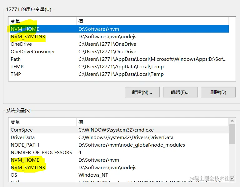 这个时候会看到已经在系统变量和用户变量中创建了下面两对环境变量:
