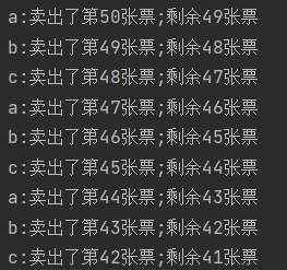 System.out.println(Thread.currentThread().getName()+":卖出了第"+ number-- +"张票;"+"剩余"+number+"张票");