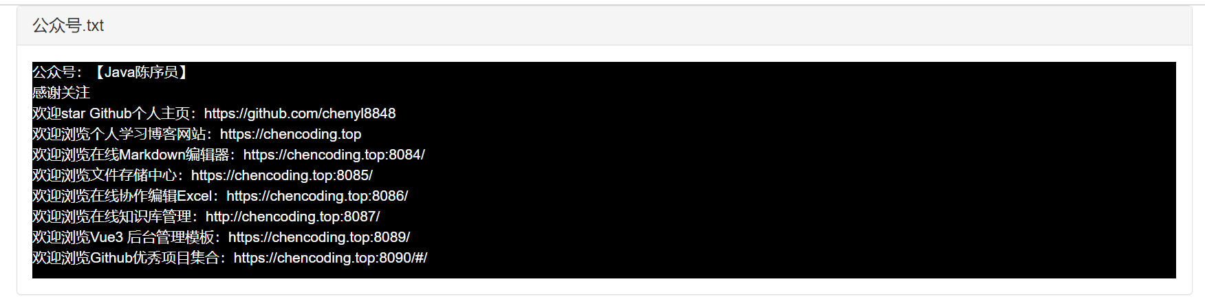 文本预览不仅支持预览 .txt,而且 .html、.js、.xml、.json、.yaml、.java、.py、.cpp 等也是支持的!