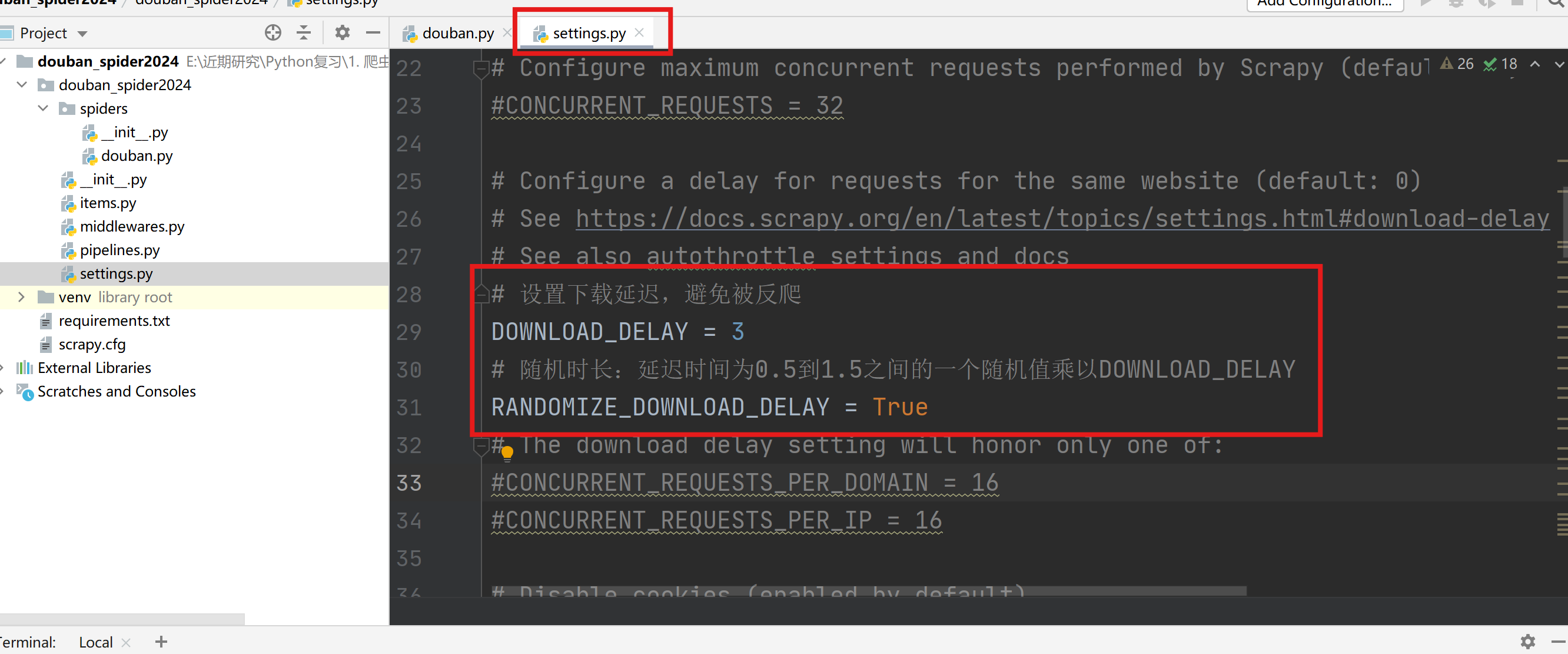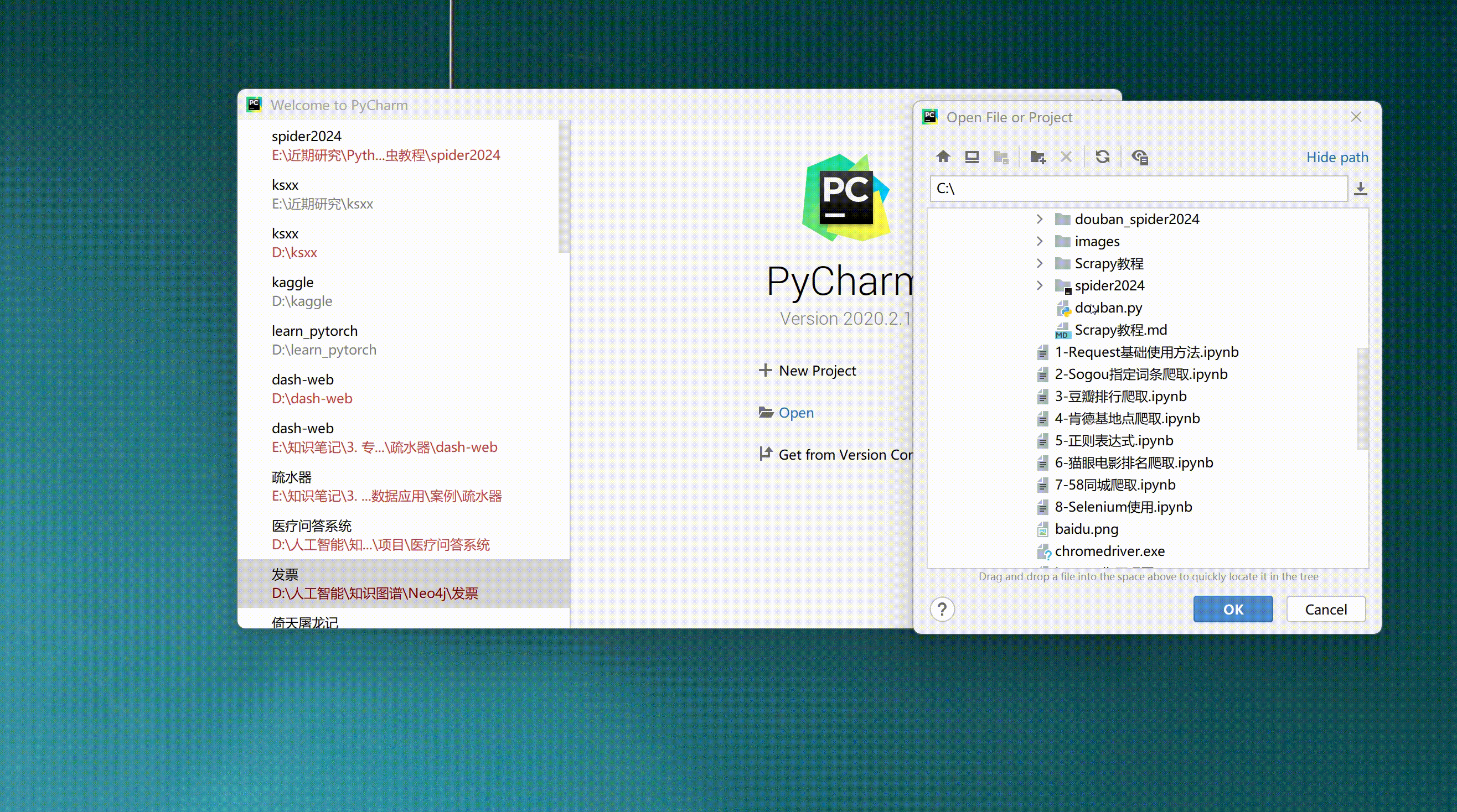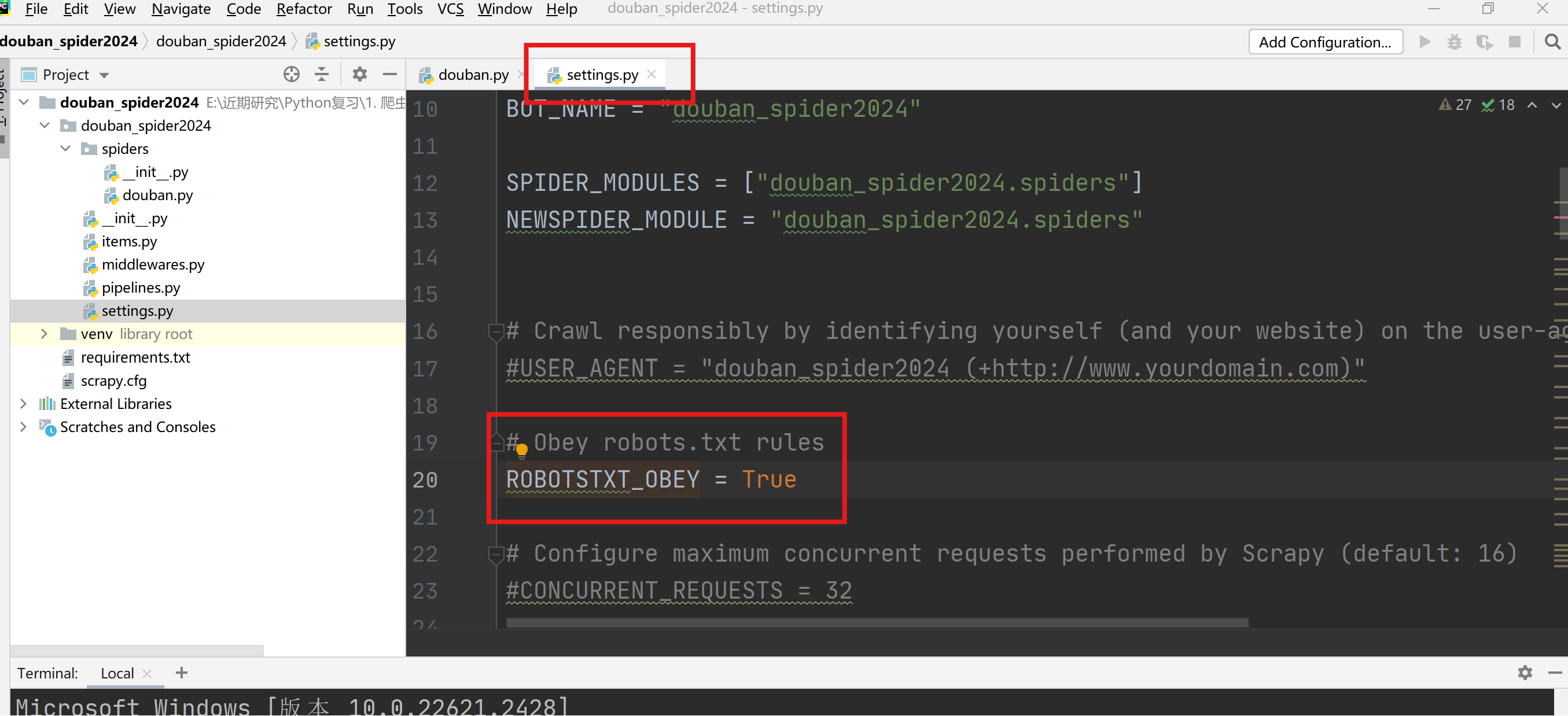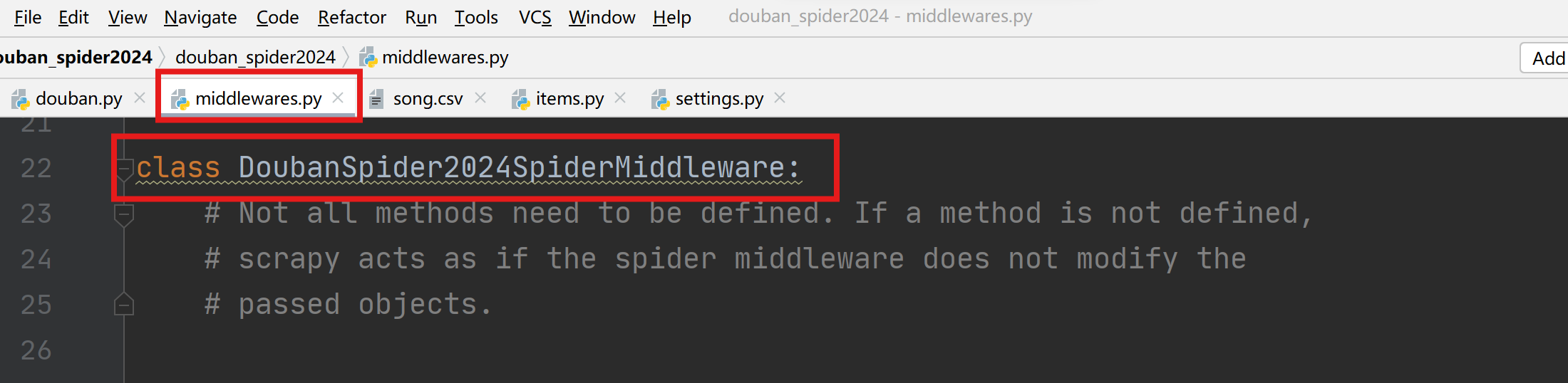 使用Pycharm打开创建好的douban_spider2024文件夹,进入项目。