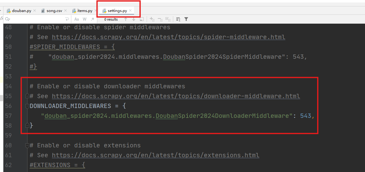 打开下载中间件(downloader_middlewares),实现拦截并修改Request的请求内容。