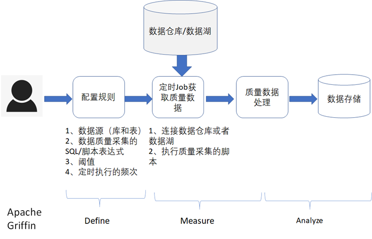 - 在架构图中,Define主要用于数据质量的维度定义,也就是我们说的数据质量规则的定义。