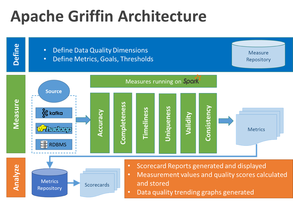 - Apache Griffin 在做数据质量检测时,是基于Spark 实现的,以Spark任务的形式对定义的待采集数据质量的数据源进数据采集。