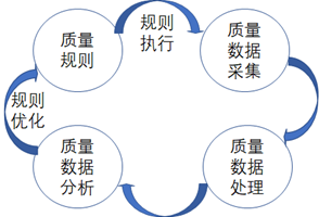 - 质量的数据处理和分析:对抓取到的原始质量数据进行处理,然后通过质量数据的分析来优化质量规则的配置,形成一个闭环的链路,如下图所示