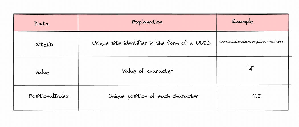 CRDT 通过为每个字符分配两个关键属性来满足交换律和幂等性: