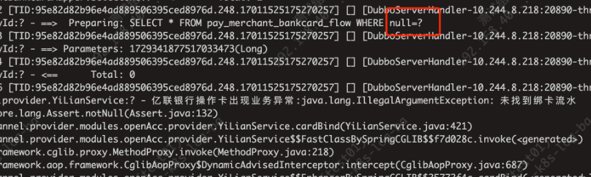 通过logtrace排查程序,定位到如下代码。代码很简单,调用mybatis-plus的getById函数按主键查询数据。PayMerchantBankCardFlow这个实体类里在主属性上有标记@TableId,况且这个实体类在本次开发迭代中并未改动。那么,今天,mybatis-plus底层拼接sql时,怎么没有把主键字段拼出来呢?