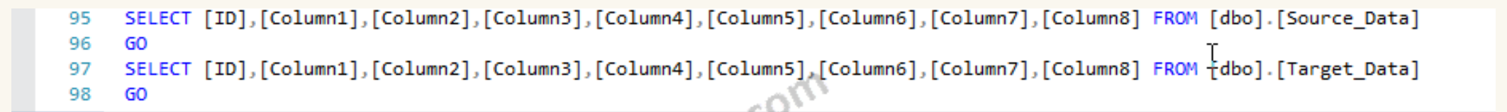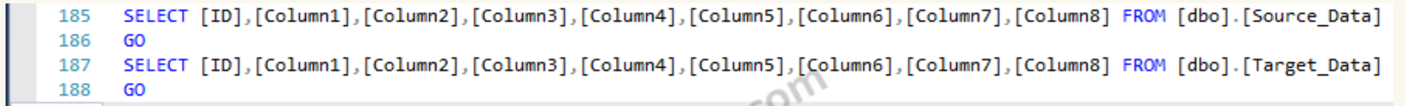 INSERT INTO [dbo].[Target_Data]([ID],[Column1],[Column2],[Column3],[Column4],[Column5],[Column6],[Column7],[Column8])