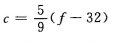 c = 5 * (f - 32) / 9;