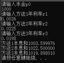 printf("方法3本息和%f\n", p3);