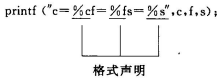 与 printf 函数中的格式声明类似,以 % 开始,以一个格式字符结束,中间可以插入附加的字符