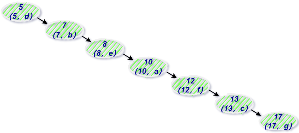 将页 8 读取到内存中后,页中的数据是链表进行链接的,而且键值是按照顺序存放,可以根据二分查找法定位到键值 18;
