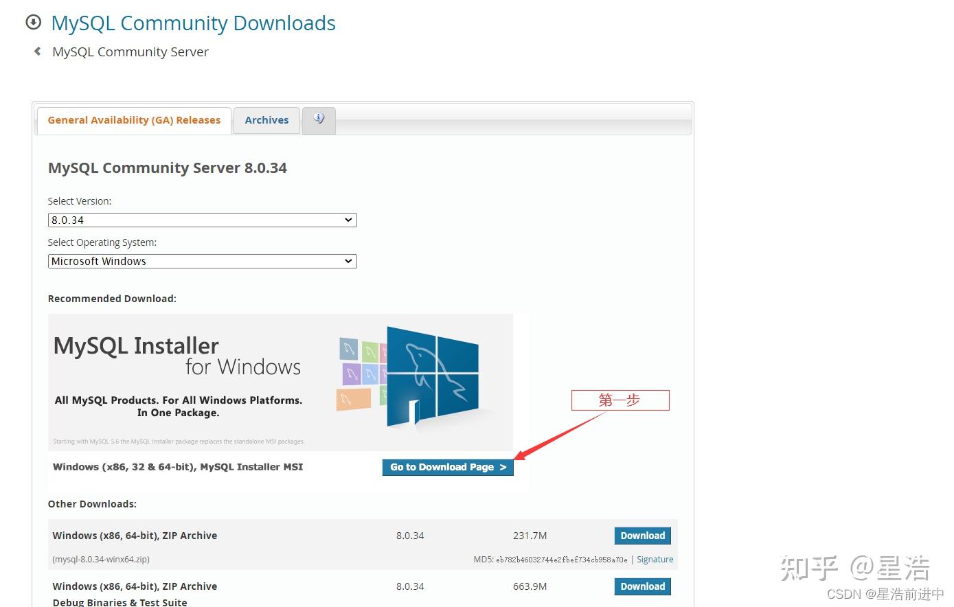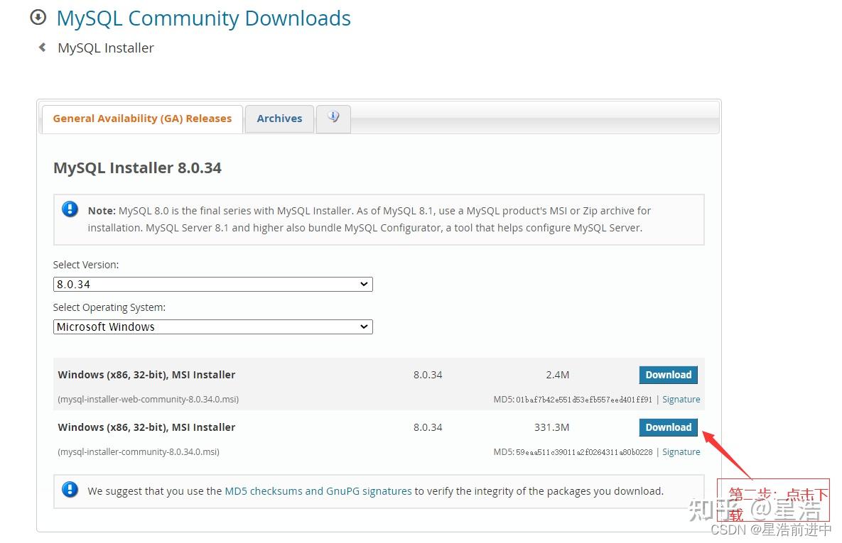 从官网下载MySQL,这里我选用的是Mysql8.0.34版本