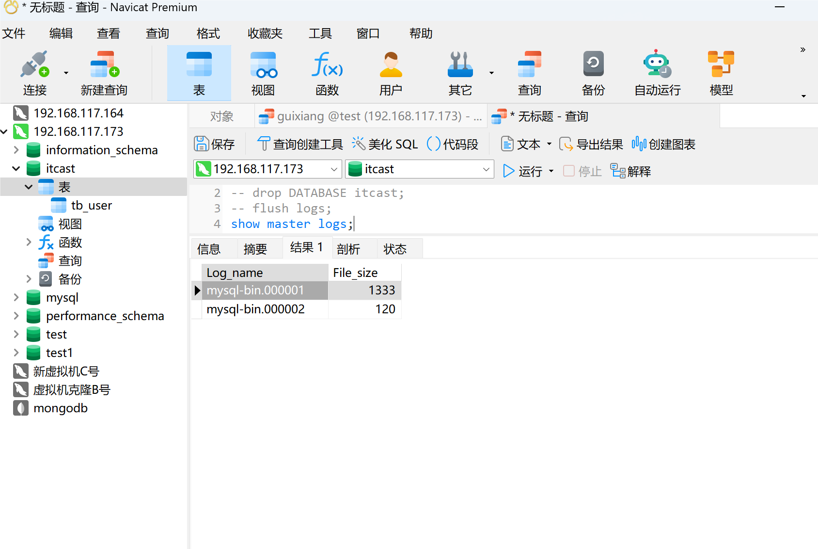 第六步:新建binglog,减少外来日志影响
