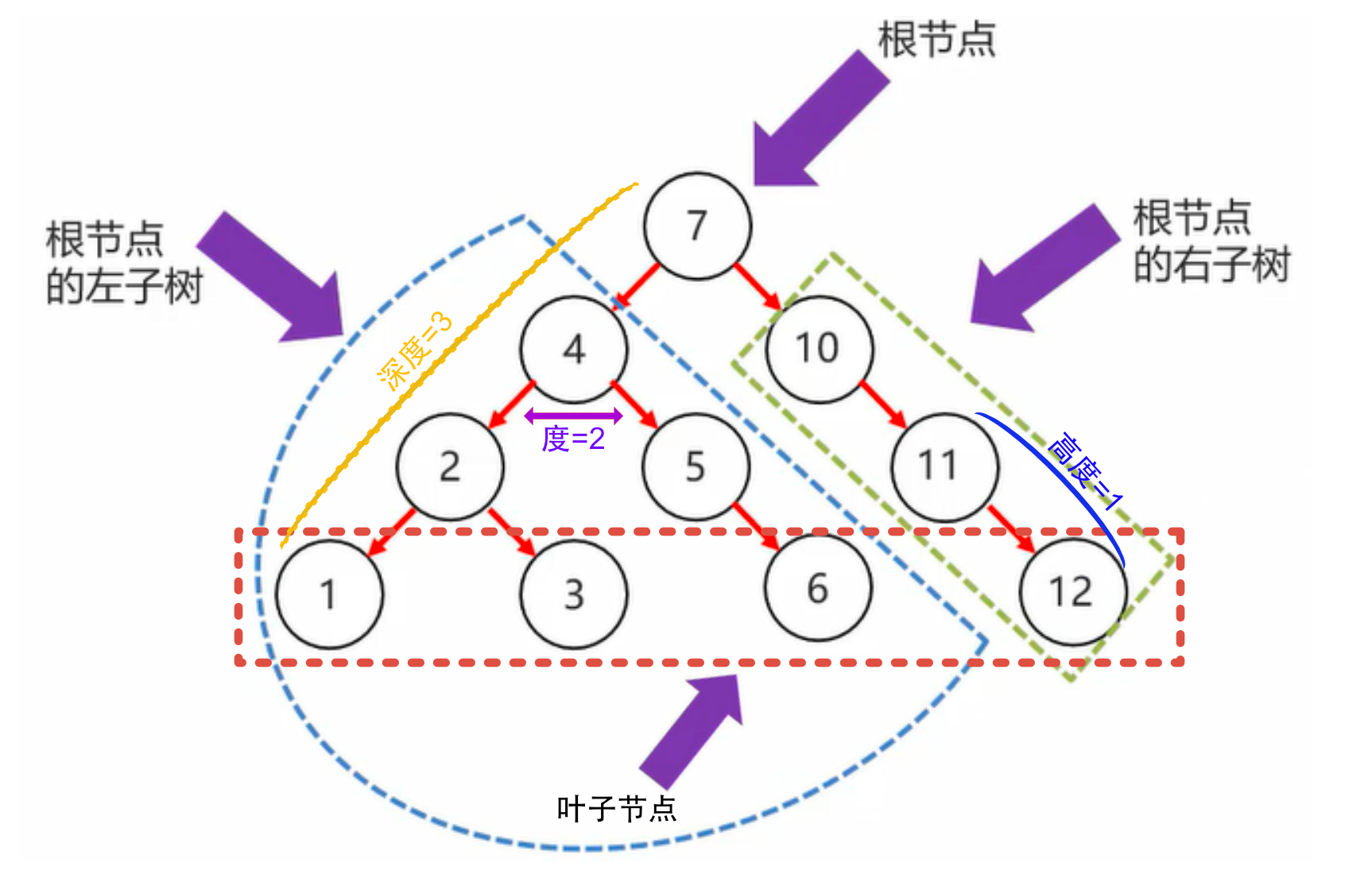二叉树节点的高度:指从该节点到叶子节点的最长简单路径边的条数。