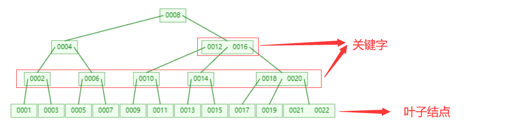 索引节点按照层级关系,有时又可以分为根节点和中间节点,其本质是一样的,都只包含下一层节点的入口值和入口指针;