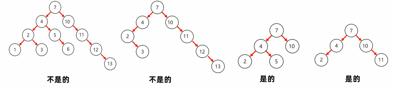 要求:任意节点的两个左右子树高度差不超过1,任意节点的左右子树都是一个平衡二叉树。