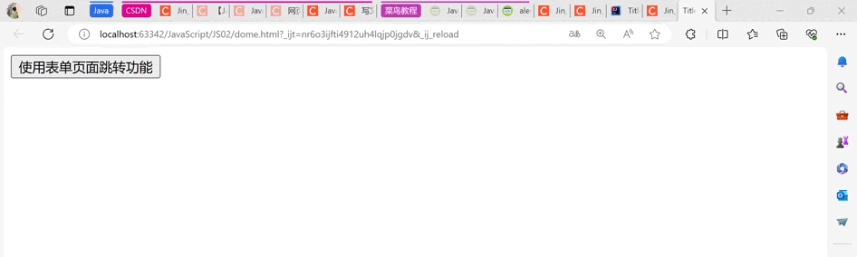 <form action="https://blog.csdn.net/Jin_Xiang123?spm=1010.2135.3001.5343" method="GET"> <!-- 表单内容 --> <input type="submit" value="使用表单页面跳转功能"> </form>