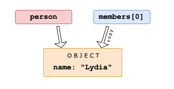 在 JavaScript 中,当设置两个对象彼此相等时,它们会通过引用进行交互。