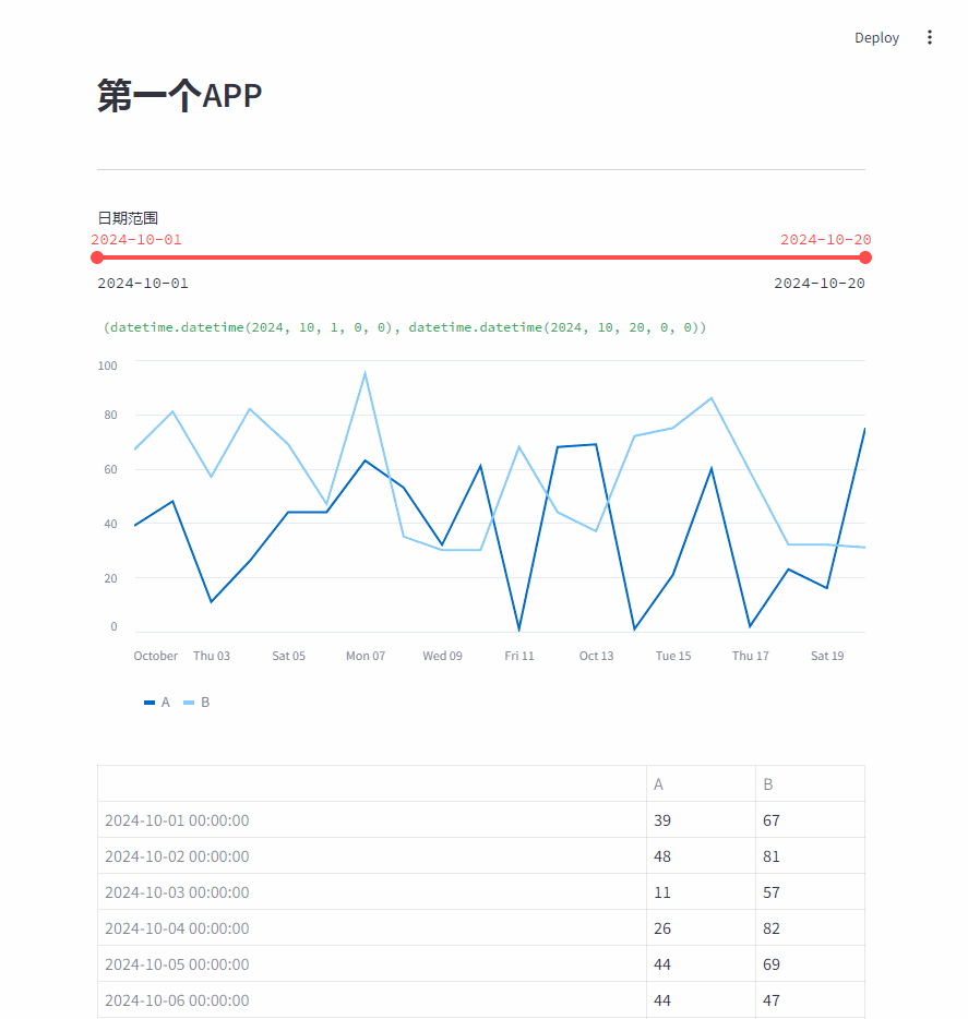 接下来,添加Streamlit的控件,让我们可以动态的改变表格和折线图中的数据范围。