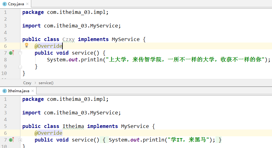 - 在myOne模块中新建一个包,提供一个接口和两个实现类